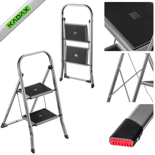 KADAX DRABINA DOMOWA DRABINKA 2 STOPNIOWA SKŁADANA STALOWA 150kg SOLIDNA
