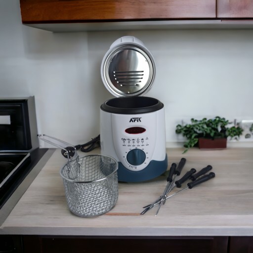 Prezentowany model frytkownicy ma kosz oraz misę, która może zmieścić 1 litr.