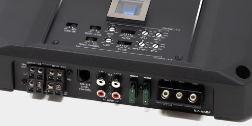 W nowej serii R pojawiło się także wejście hi-input z funkcja auto-start realizowane przez gniazda RCA: oznacza to że wystarczy podłączyć mu sygnał biegnący do głośników w aucie, a wzmacniacz automatycznie się uruchom i i wyłączy przy wykryciu napięcia i jego zaniku.