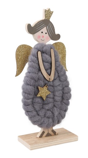 FIGURKA DREWNIANA ANIOŁEK Z WEŁNĄ 9,5x5x21 cm