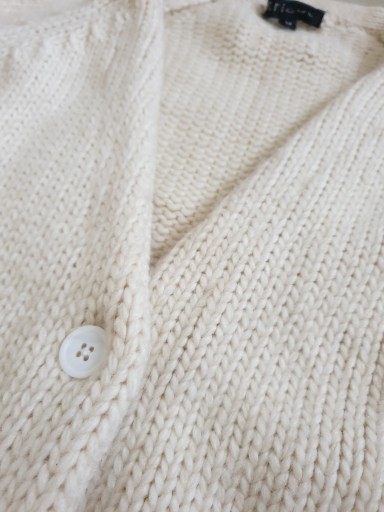 TRICOT MIĘKI I PUSZYSTY WEŁNIANY Z ALPAKĄ M,dł całkowita 79cm,szer pod pachami 49cm,dł rękawa od szyi 70cm,zapinany z przodu na perłowe białe guziczki,PIĘKNA PUSZYSTA WEŁNA,POLECAM