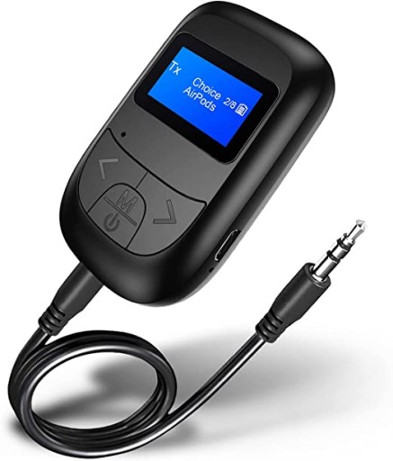 - Wyświetlacz wizualny: Zaprojektowany z ekranem LCD może sprawić, że obsługa będzie wygodniejsza: nazwa urządzenia Bluetooth będzie wyświetlana na ekranie (do 8 pobliskich urządzeń), abyś mógł swobodnie wybierać i łączyć się, nie zostaniesz połączony przez pomyłkę. I ten widoczny adapter audio 3,5 mm nadajnika Bluetooth może również wyświetlać tryb/stan, baterię, głośność itp.