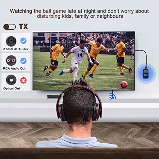 - Adapter Bluetooth 5.0 o niskim opóźnieniu: Adaptując wysokiej jakości układ o niskim opóźnieniu i technologię Bluetooth 5.0, ten adapter nadajnika audio Bluetooth do telewizora obsługuje niskie opóźnienia w trybach nadajnika (TX) i odbiornika (RX) oraz zapewnia transmisję dźwięku Bardziej stabilny Bluetooth, umożliwia Ciesz się zsynchronizowanym dźwiękiem o jakości płyty CD podczas oglądania filmów bez opóźnień. Wskazówka: odległość transmisji musi wynosić do 32 stóp