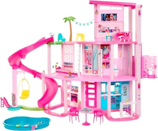 Ten bardzo duży domek deluxe dla lalek ma najwyższą zjeżdżalnię w serii Barbie Dreamhouse