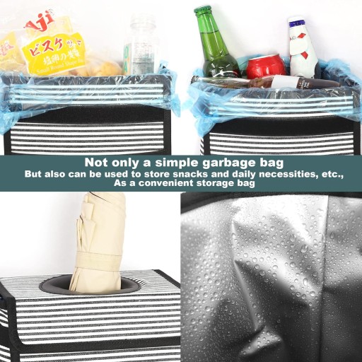Wielozadaniowość: wyściółka PEVA pełni także funkcję izolacji cieplnej. Ten samochodowy worek na śmieci może nie tylko pomieścić śmieci, ale także służyć jako worek izolacyjny. Można przechowywać gorące jedzenie, zimne rzeczy, owoce, napoje, przekąski i utrzymywać ciepło przez kilka godzin. Temperaturę jedzenia i chłodzenie napojów można również wykorzystać jako torbę do przechowywania innych drobnych przedmiotów, takich jak ręczniki papierowe, zabawki, torby, przekąski, parasole i inne rzeczy, które chcesz spakować.