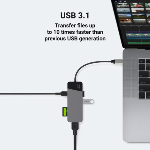 Stacja dokująca Green Cell umożliwia rozszerzenie funkcjonalności z jednego portu USB-C aż do 7, które pozwalają na wygodną pracę oraz na podłączenie różnorodnych urządzeń. Wszystko to przekłada się zwiększenie efektywności pracy. Adapter oferuje również możliwość szybkiego ładowania, przesyłania danych oraz obrazu - a wszystko to za sprawa jednego urządzenia.