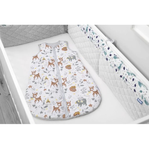 Śpiworek do spania w rozmiarze M będzie służył także starszym dzieciom (9-18 miesięcy) zapewniając im ciepło i bezpieczeństwo. Wykonany jest z miękkiej bawełny wypełnionej otuliną. Nie zawiera twardych elementów, które mogłyby podrażnić skórę dziecka. Śpiworek wyposażony jest w dwustronny zamek błyskawiczny, zabezpieczony przy szyi, pozwalający na zmianę pieluchy bez wyciągania dziecka ze śpiworka. Pasuje do innych produktów naszej marki.