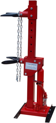 Podczas naciskania dźwigni nogą, zamocowana sprężyna zostaje ściśnięta w celu zmontowania lub rozmontowania kolumny McPherson.