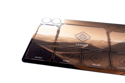 Antypoślizgowa, gumowa planszetka gracza dedykowana do gry Diuna Imperium. Na macie są wyznaczone pola do gry. Motyw z pustynnym pustkowiem. Taka oprawa wizualna pozwala lepiej wczuć się w grę, co znacznie zwiększa doznania z rozgrywki. Poza zwiększonymi walorami estetycznymi gry, mata dodatkowo chroni elementy przed zniszczeniem oraz przesuwaniem.