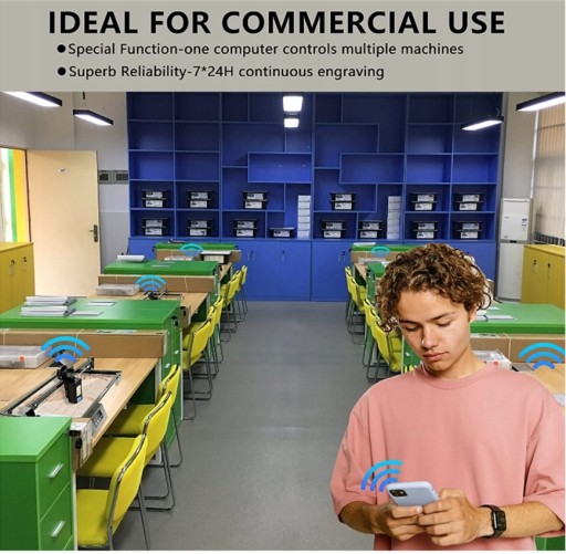 Idealny do użytku komercyjnego, jeden komputer steruje wieloma grawerkami laserowymi. Ray5 10w może działać z kontrolą tylko jednego terminala, można ustawić wiele jednostek grawerujących i tnących razem, dołączone - całkowite grawerowanie 7*24H i zwiększyć wydajność produkcji.