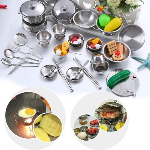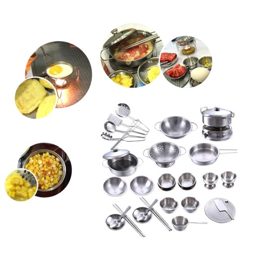 25 szt. Zabawki kuchenne do udawania Naczynia kuchenne Stal nierdzewna Trwałe polerowane