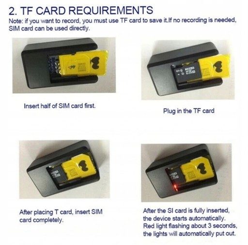 Wybierz numer karty SIM, wtedy usłyszysz dźwięk wokół trackera, nie ma światła ani hałasu, możesz po cichu monitorować i monitorować sytuację wokół trackera.