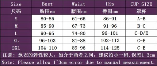 Uwaga: strój kąpielowy jest bardziej elastyczny, jeśli jest pomiędzy, zaleca się wziąć mniejszy rozmiar, błąd wynosi 1-3 cm