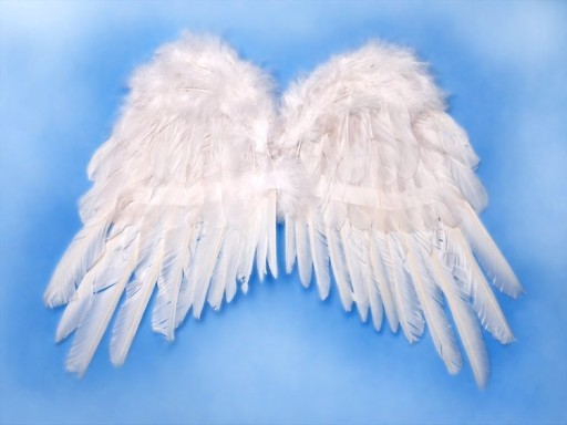 Skrzydła wykonane z białych piór. Pokryte u góry białym puszkiem. Zakładane na szelki.