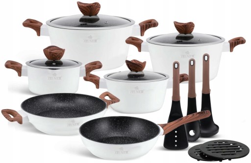 ZESTAW GARNKÓW INDUKCJA / NA GAZ KOMPLET GARNKÓW MARMURKOWYCH GARNKI 15 ELE