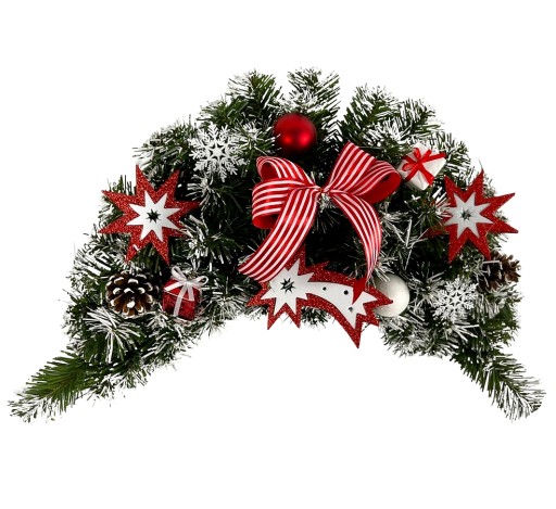 РОЖДЕСТВЕНСКИЙ КРЕМ С КРАСНЫМИ УКРАШЕНИЯМИ МАЛЕНЬКАЯ ГИРЛЯНДИЯ 45 см