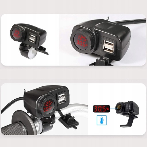 ŁADOWARKA MOTOCYKL WOLTOMIERZ TERMOMETR 2x USB BK