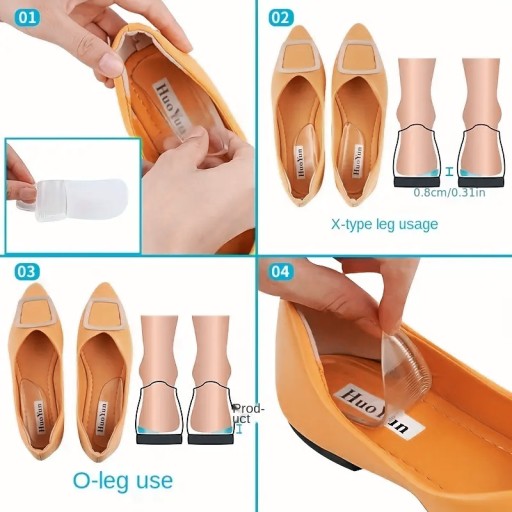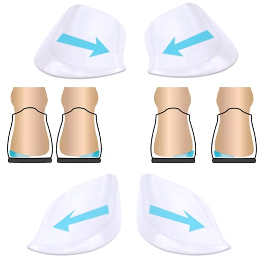 Żelowe podpiętki do butów korygujące nieprawidłowe ustawianie nóg. Podpiętki jedną ze ścianek posiadają grubszą od drugiej co powoduje zmniejszenie wady koślawych lub szpotawych nóg. Zapobiegają również niszczeniu butów przez złe ustawianie stóp. Podpiętki dodatkowo amortyzują piętę podczas chodzenia, zmniejszają uczucie zmęczenia stóp oraz odciążają kręgosłup i kolana.