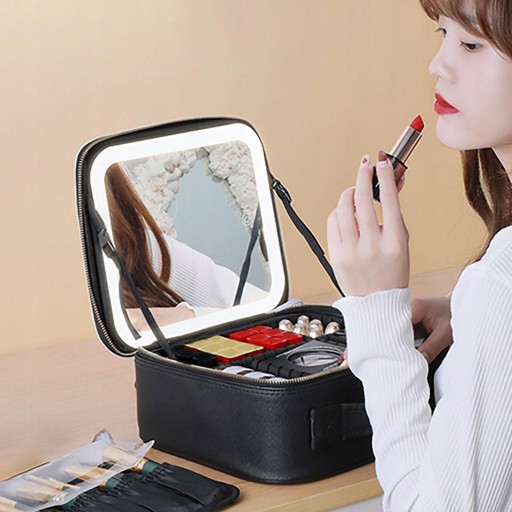Kosmetyczka z regulowanym lustrem: nasza kosmetyczka ma regulowane światła LED, 3 poziomowe światła (3200k-4800k-7300k) ku twojej satysfakcji oraz poprawia wyrazistość twarzy w celu prawidłowego makijażu dzięki regulowanemu lusterku dla bliższego i wyraźniejszego widoku.