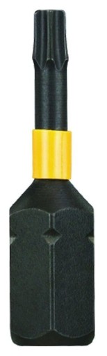 Zestaw bitów DEWALT DT70523T-QZ (32 elementów) Znakomity zestaw końcówek do wkrętaki. Możliwość stosowania w wkrętarkach wyposażonych w udar. Specjalna strefa elastycznego skręcania Flexi-Torsion redukuje obciążenie wierzchołka końcówki i tym samym niebezpieczeństwo pęknięcia łba śruby. Znakomite materiały poprawiają przenoszenie momentu obrotowego i zwiększa żywotność końcówki. Poprzez korzystne osadzenie końcówki we wkręcie zapewnia maksymalną dokładność i lepszy uchwyt. Stal wysokojakościowa zapewnia odporność i długą żywotność. W skład zestawu wchodzi 32 sztuki bitów z mocowaniem na sześciokąt 1/4": 10 x Pozi 25 mm bity PZ1 (2), PZ2 (5), PZ3 (3), 7 x Phillips 25 mm bity: PH1, PH2 (3), PH3, PR2 (2), 3 x rozcięte 25 mm bity: 6 mm, 8 mm, 10 mm, 11 x Torx 25 mm bity: T10 (2), T15 (2), T20 (2), T25 (2), T27, T30, T40 oraz magnetyczny uchwyt bitowy. Zestaw w wytrzymałej i eleganckiej kasecie z tworzywa sztucznego.