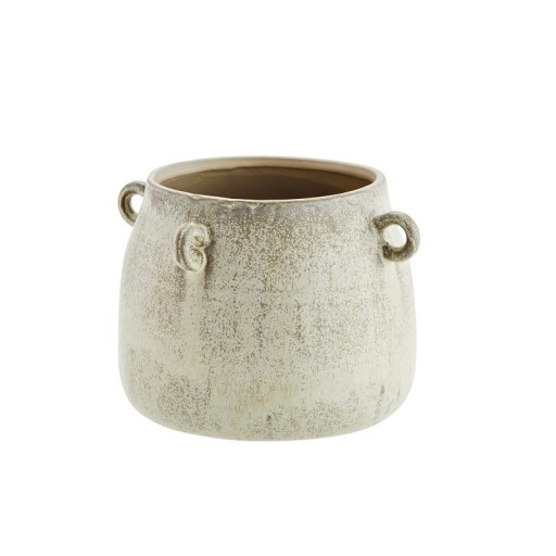 Doniczka marki Madam Stoltz ozdobiona małymi uszkami. Doniczka wykonana ręcznie z kamionki w odcieniach kości słoniowej, szarości i beżu. Każda sztuka jest niepowtarzalna i różni się od pozostałych delikatnie nieregularnym kształtem oraz kolorem.
