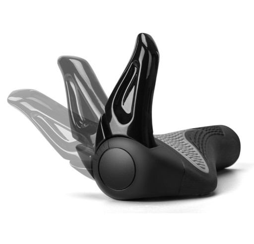 Anatomicznie dopasowane chwyty kierownicy wykonane z gumy dla uzyskania unikalnego uczucia miękkości, przy jednoczesnym utrzymaniu nadgarstków w odpowiedniej pozycji. Unikalny wzór powierzchni chwytów oraz ergonomiczny kształt zapewniają absorpcję wstrząsów oraz pewność chwytu. Wyposażone w aluminiowe rogi kierowcy które przydadzą się na dłuższe dystanse, aby ręce tak bardzo się nie męczyły.