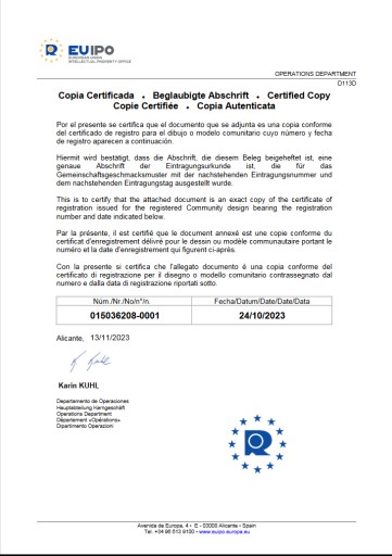 Wzór opracowany przez naszego projektanta i zastrzeżony w EUiPO jako wzór przemysłowy. Nr zgłoszenia 015036208-0001, 015036208-0002, 015036208-0003
