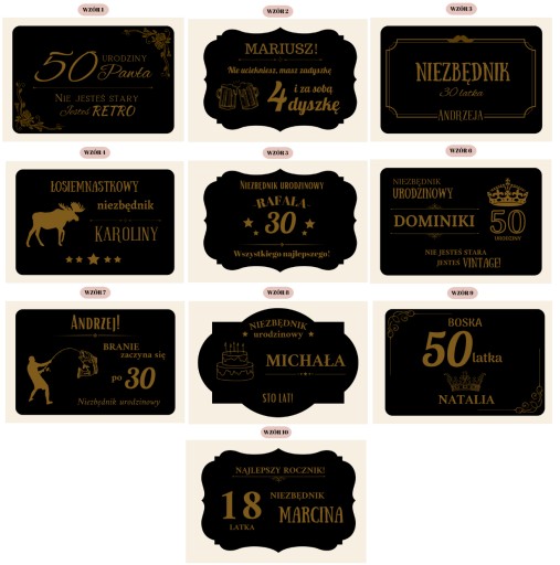 - Informacja o wieku solenizanta (np. 50 urodziny)