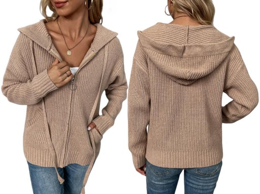 ROZPINANY SWETER KARDIGAN DAMSKI NA ZAMEK Z KAPTUREM
