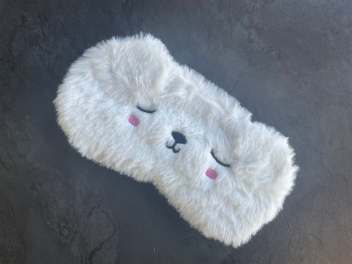 OPASKA NA OCZY MASKA DO SPANIA SNU RELAKSU piesek PLUSZOWY PIES BIAŁY