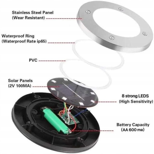 3, wodoodporna konstrukcja ze stali nierdzewnej: część ciała wykonana ze stali nierdzewnej i tworzywa abs o wysokiej wytrzymałości, wodoodporność IP65 sprawia, że dioda LED na dysku słonecznym nadaje się do use.no na zewnątrz. Nie martw się o deszcz, śnieg, mróz lub deszcz ze śniegiem. Ale trzymaj to z dala moczenie w wodzie deszczowej.