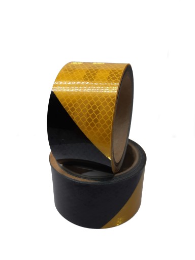 PREMIUM Taśma odblaskowa żółto czarna jednostronnie klejąca o wysokiej sile klejenia.