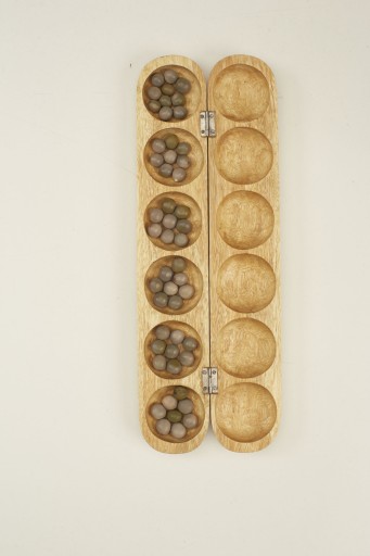 Mankala - wersja Oware (wari, awale) - gra składana, wykonana z afrykańskiego drewna osese