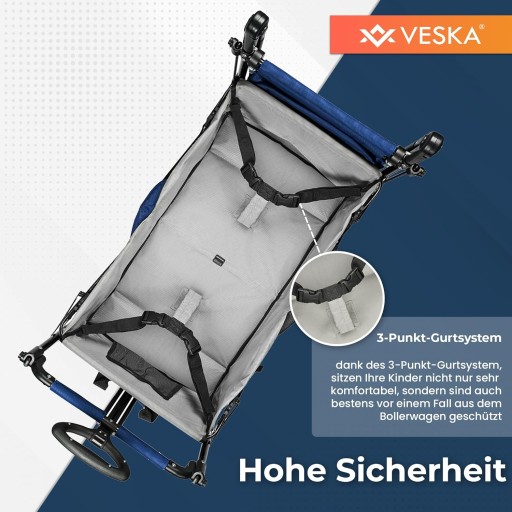 - ✔ Składany wózek VESKA zapewnia komfort i funkcjonalność. Najlepszy pomocnik, który towarzyszy Ci w każdym miejscu. Idealnie nadaje się na rodzinne wycieczki, kemping, plażę i do ogrodu.