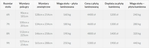 - Stół dostępny w rozmiarach ,6,7,8,9 ft. - zobacz ofertę