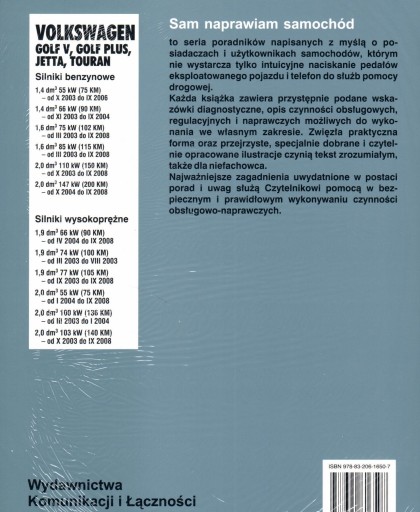 Książka napraw i instrukcja obsługi poświęcona obsłudze i naprawie samochodów osobowych marki Volkswagen (VW). W niniejszym poradniku opisano następujące modele:
