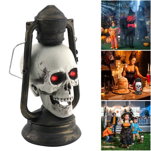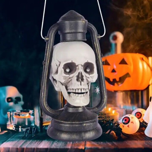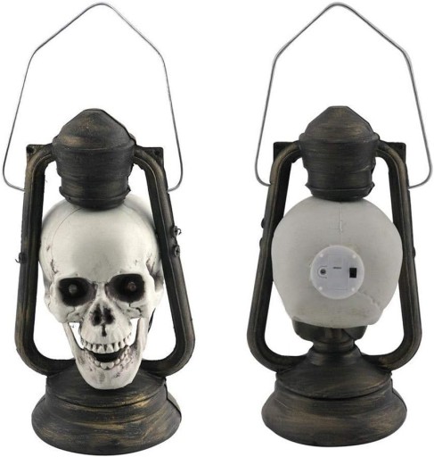 Lampy czaszki można zawiesić na drzewach, okapach itp. i mogą być używane jako rekwizyty w dłoni lub umieszczone na stole jako dekoracje.