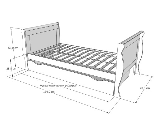WYMIARY WEWNĘTRZNE ŁÓŻKA: