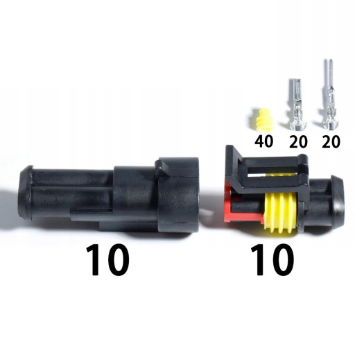 2Pin (10 zestawów) 10 x męskie złącza obudowy, 10 x żeńskie złącza obudowy, 20 x męskie piny, 20 x trzpień żeński, 40 x silikonowa podstawa