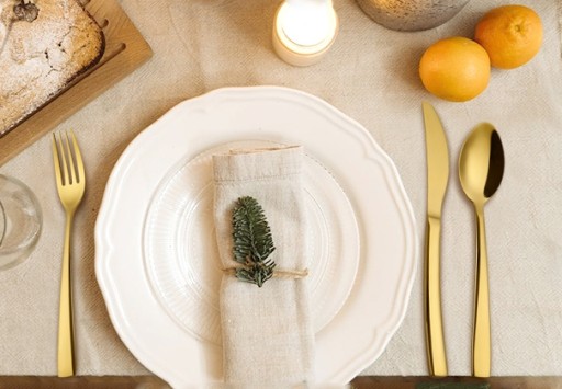 🍴24 Zestaw Sztućców 6x4 6 Osób Polerowany Złoty Widelec Łyżka Nóż Zmywarka-Bezpieczny