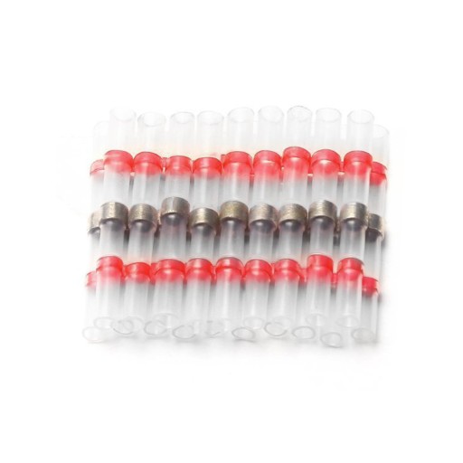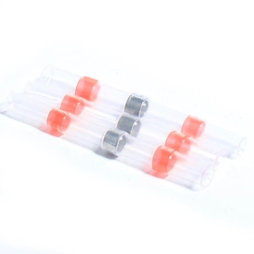 Zestaw szybkozłączek z cyną w rurze termokurczliwej do naprawy i podłączenia przewodu.