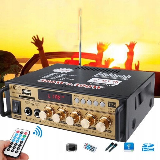 🌈 BT-198E 300 W 300 W wzmacniacz samochodowy HIFI Cyfrowe audio Bluetooth AMP Radio FM dla samochodów/domu/kina