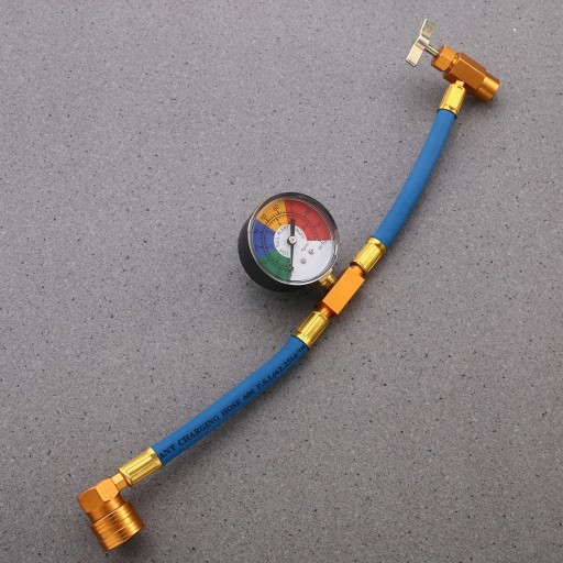 Ten wąż do napełniania czynnika chłodniczego R134A jest wyposażony w miernik do łatwego przeglądania podczas użytkowania. Charakteryzuje się mocną konstrukcją maksymalnej wytrzymałości, a gwint 1/2 jest specjalnie zaprojektowany dla Ameryki i Europy. Będzie działał dodając czynnik chłodniczy R134A do pojazdu z wysoka wydajność pracy.