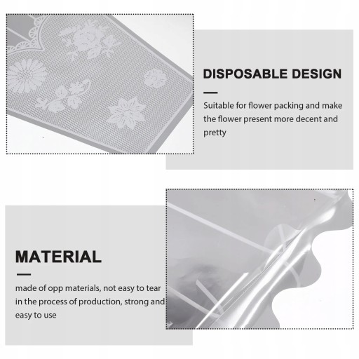 Cechy Kolor: jak pokazano Materiał:Przeciw Rozmiar: 45,00X28,00X10,00 cm/17,68X11,00X3,93 cala Jednorazowy torby na kwiaty są wykonane z materiałów opp, niełatwych do rozdarcia proces produkcji, mocny i łatwy w użyciu. Wypełnij bukiet kwiatów w tych torebkach, aby wyrazić szczerą emocjonalną ekspresję w sercu. Dobry jako wyjątkowy prezent dla członków rodziny lub przyjaciół, zaimponuj im znacznie bardziej. Nadaje się do pakowania kwiatów i sprawia, że prezent kwiatowy jest bardziej przyzwoity i ładny. Ta torba jest bardzo dekoracyjna. Wystarczająco dużo toreb do pakowania kwiatów i możesz udostępniać torby do pakowania kwiatów znajomym.
