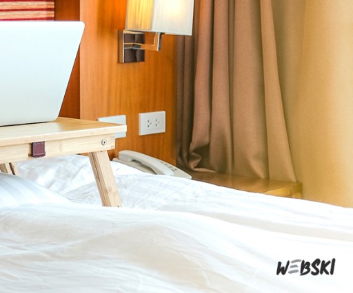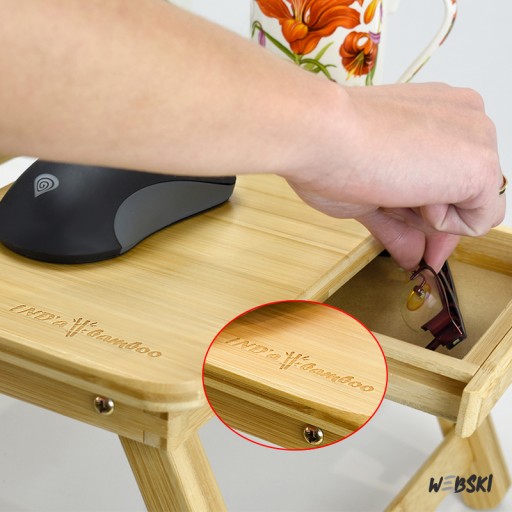 Składany stolik bambusowy marki Ind'a Bamboo by Webski przeznaczony do laptopów, tabletów o ekranach od 7 do 15 cali.