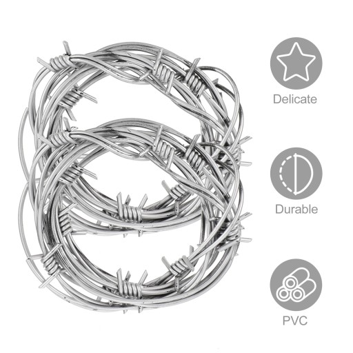 To jest rekwizyt Halloween Fałszywe druty kolczaste. Dzięki srebrnemu kolorowi, niewielkiej wadze, odpowiedniej długości można zawiesić go na ścianie