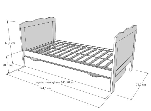 - Łóżeczko / Tapczanik ISABEL 3w1 140x70 wykonane z wysokiej jakości płyty meblowej i drewna sosnowego