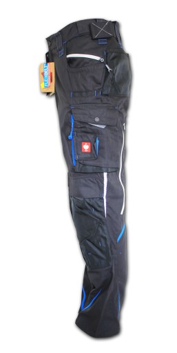 Spodnie robocze mają pas wykonany w technologii Flex Belt , dzięki czemu model ma gumkę w pasie dla bezpiecznego dopasowania. Spodnie posiadają również odpinane rozcięcie z tyłu, idealne na cieplejsze dni i zapewniające wysoki poziom komfortu. Specjalne nakolanniki wzmocnione materiałem Cordura chronią kolana. Model e.s.motion 2020 jest wyposażony w liczne kieszenie - 2 głębokie kieszenie z przodu iz tyłu, dużą boczną kieszeń zapinaną na zatrzask oraz 2 małe kieszenie zapinane na zamek.