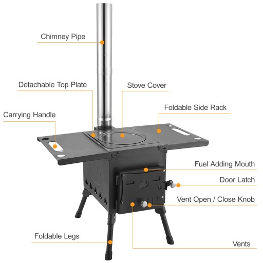Ta kuchenka kempingowa może być używana do ogrzewania i gotowania. Posiada komin zapewniający dobrą wentylację i efektywność spalania.