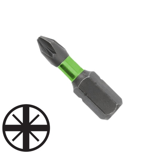 - Kod kolorystyczny ułatwia szybką identyfikację typu końcówki wkrętakowej;